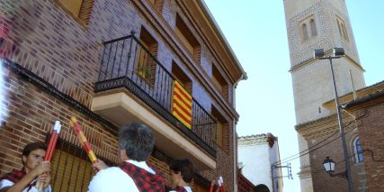 El paloteo es acompañado, desde hace muchos años por la música de la Banda de Almonacid de la Sierra y algunos vecinos de la localidad que se suman a ella para esta ocasión. Ellos son los encargados de interpretar los compases que acompañan y marcan el ritmo de los paloteadores.